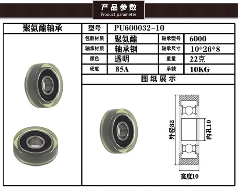 MSM replaces UMBB10-32 pack rubber bearing polyurethane pulley silent wear resistant roller PU600032-10