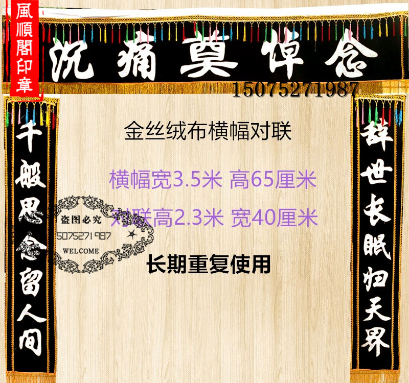 Lingtang cloth Gold velvet cloth semi-embroidered Lingtang Spiritual shed layout banner couplet Lingtang cloth White affairs batch