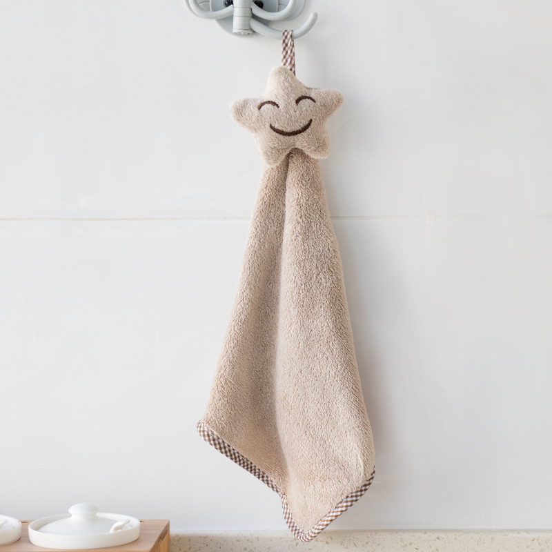 Hanging cute smiley coral velvet hand towel kitchen towel kitchen thickened strong absorbent lint-free dishcloth dishcloth