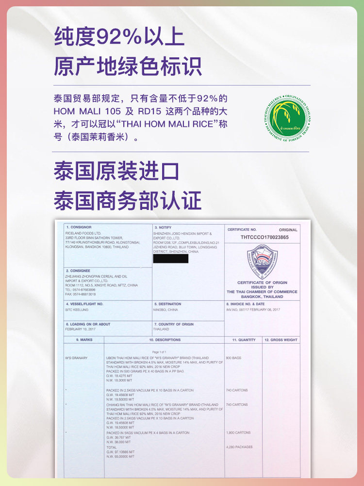Wang Family Granary Thai original import susan province Thai jasmine rice vacuum rice 5kg long grain indica rice