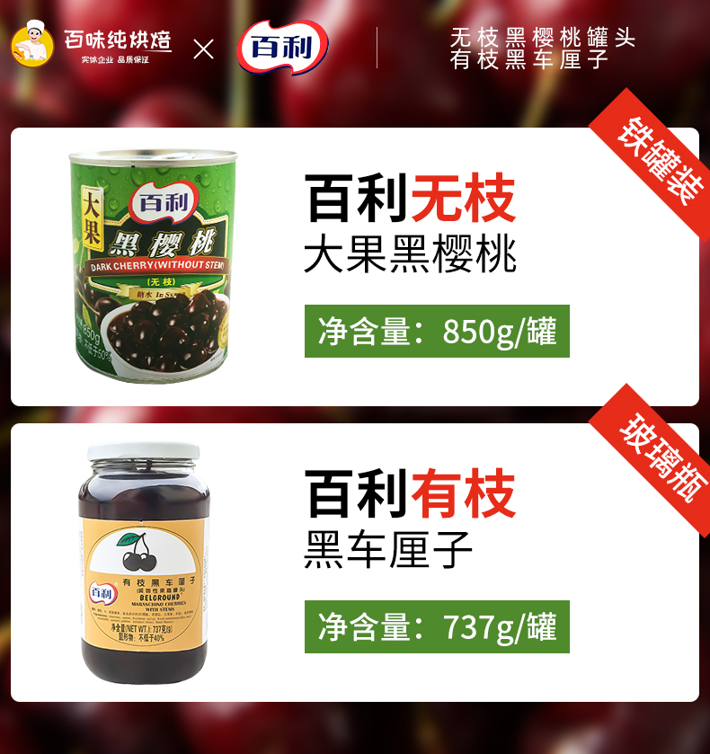 Baili Youzhi black cherry 737g unbranched black cherry canned black forest cake decorative baking raw materials