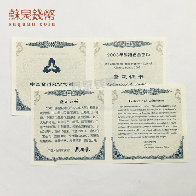 2003 Panda Commemorative Platinum Coin 1 20 ounces Platinum Cat Platinum Panda Coin with Certificate Panda Platinum Coin
