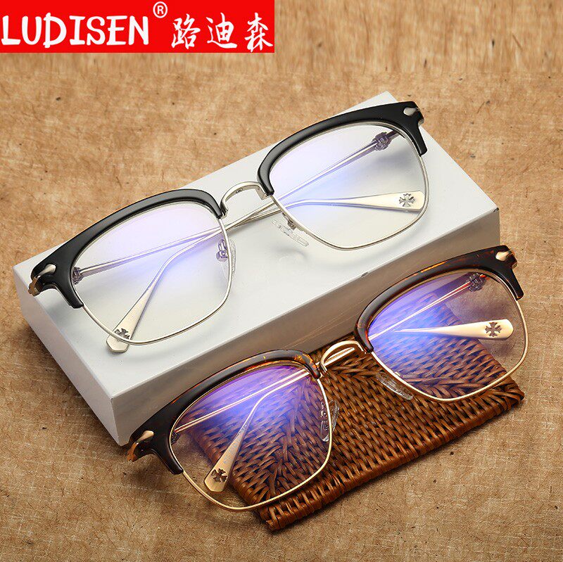 Xue Zhengqian Men Tide Retro-frame Mega-glasses Meteorological glasses Female radiation-proof eye frame flat glasses