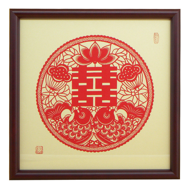 Chinese Characteristics Cut Paper Custom Design Double Fish Delight Pure Hand Cut Paper Painting China Wind Cut Paper Work Send the Old