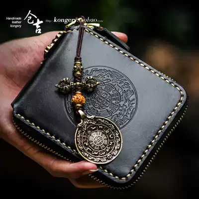 Kurayoshi handmade original hand-sewn short women's wallet vegetable tanned leather pure cowhide men's wallet leather nine palace wallet