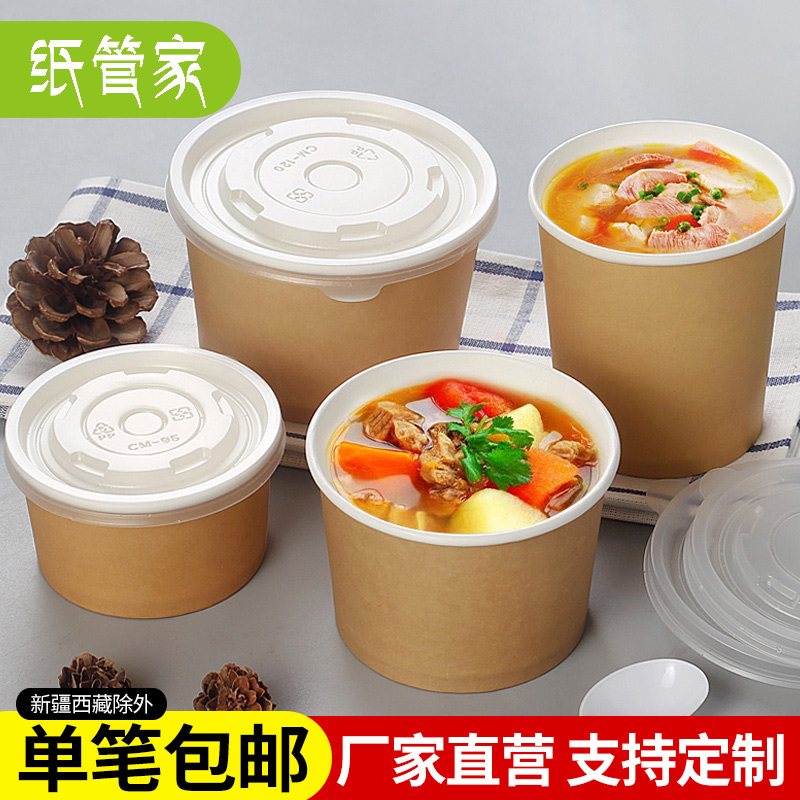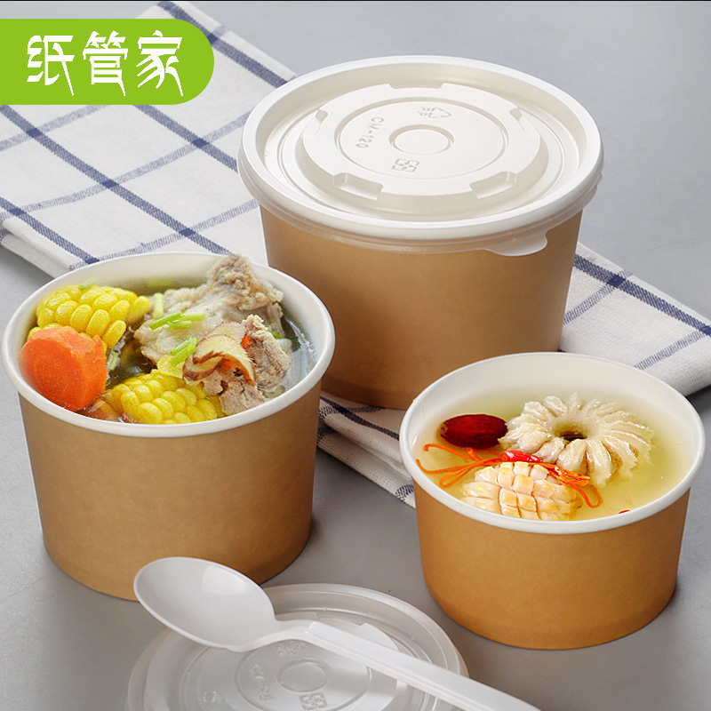 Paper Butler Home Kraft Paper Soup Bowl Disposable Round paper Bowl Meal Kit With Lid Outside to send congee sweets packing bowl 200 only