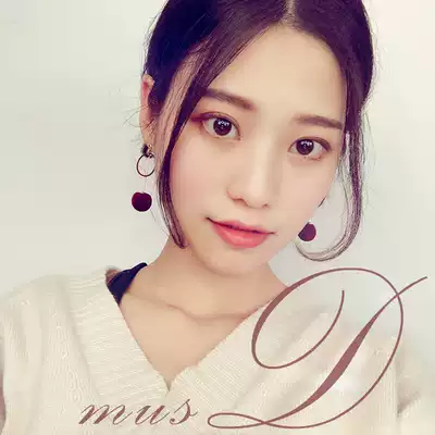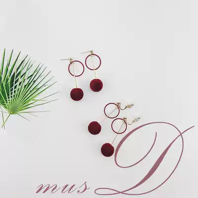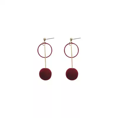 Mousse small d red hair ball earrings retro temperament Korean no ear pierced ear clip wild ear needle autumn and winter earrings female