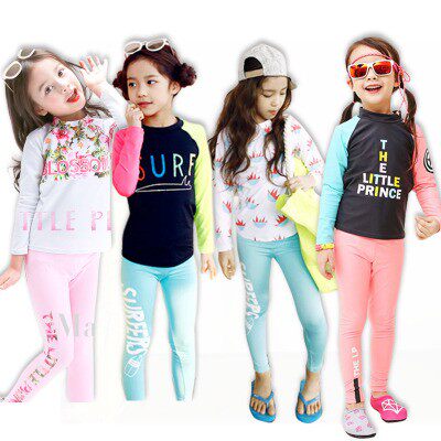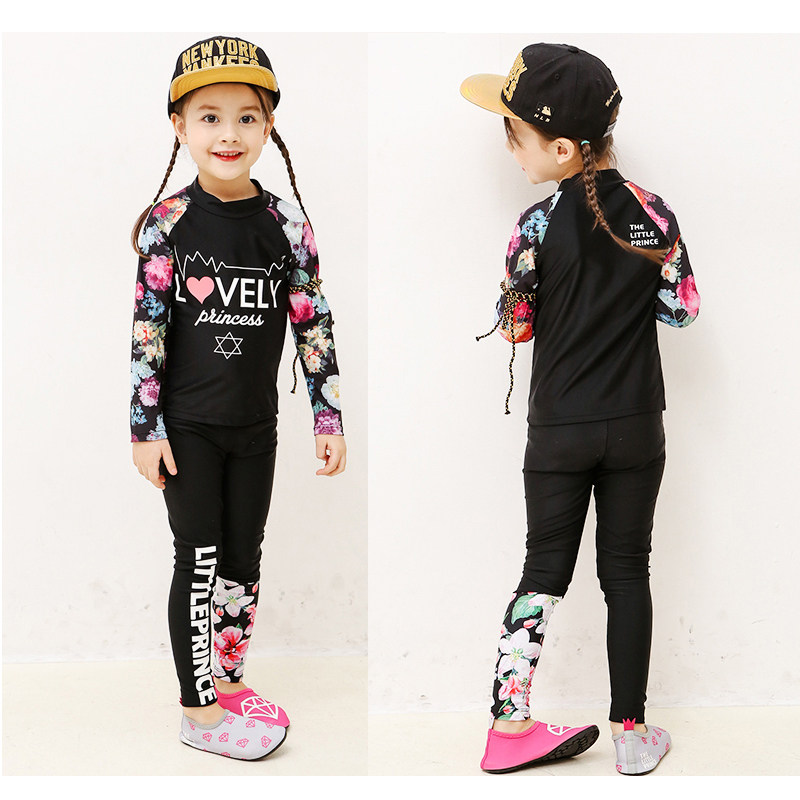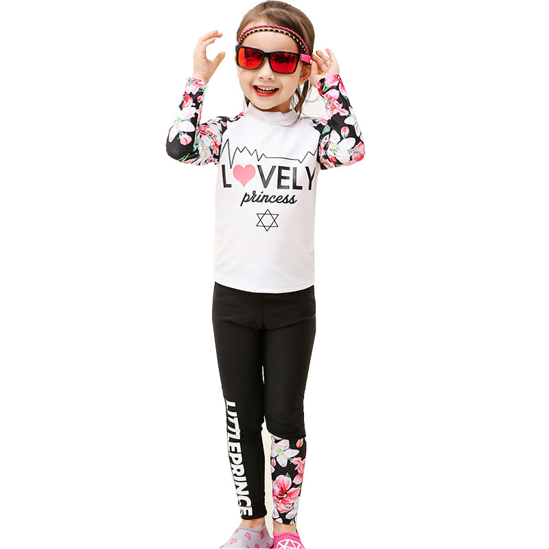 Children's swimsuits girls medium-sized children's long-sleeved pants sun protection quick-drying diving suits baby elementary school girls swimsuits