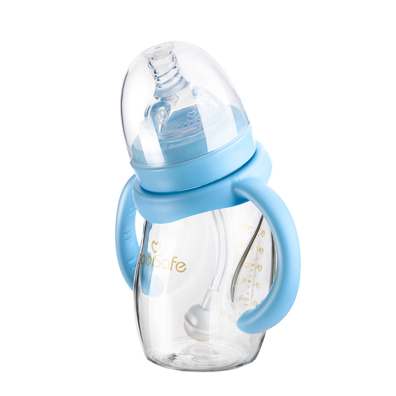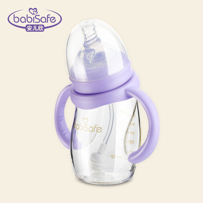 Anle Xin Wide glass bottle Baby bottle handle straw bottle 180ml soft paffin glass bottle