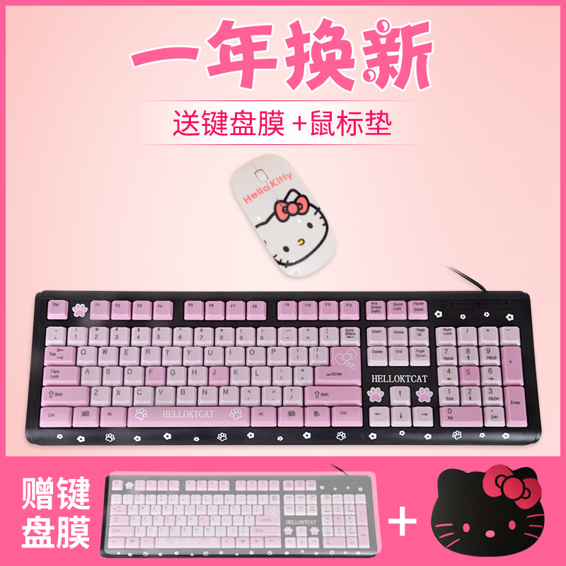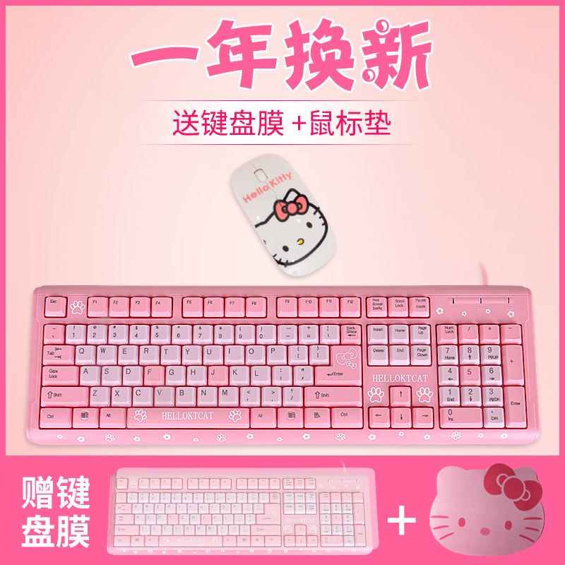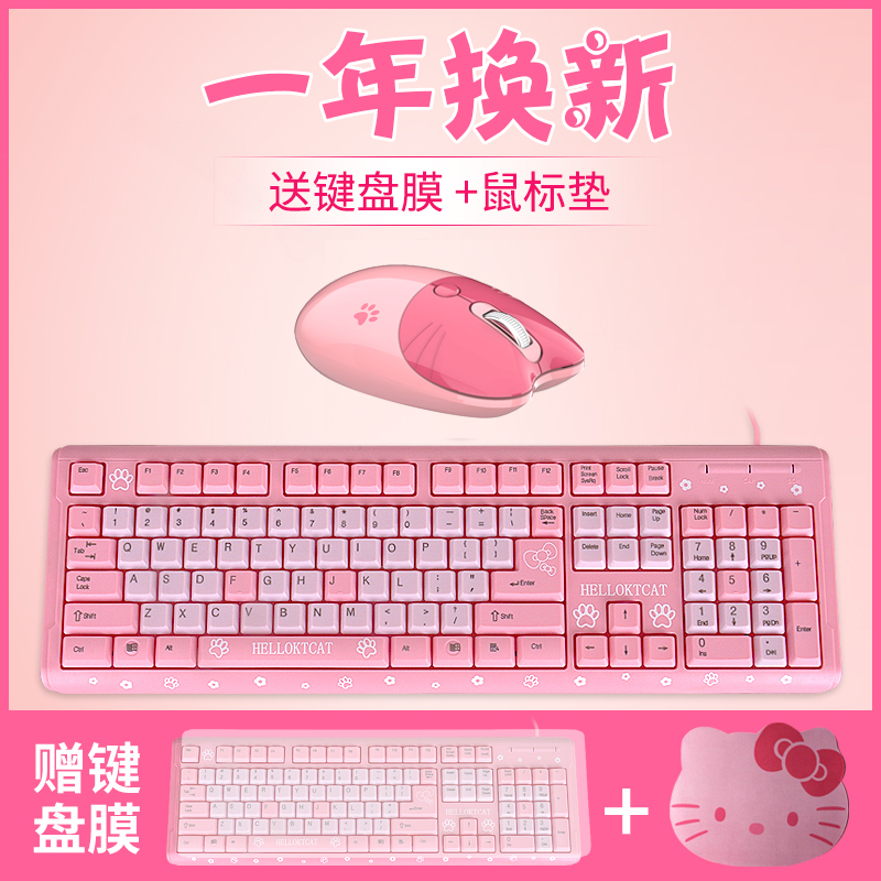 Cartoon cute girl girl heart kit mouse keyboard USB cable desktop notebook housepink