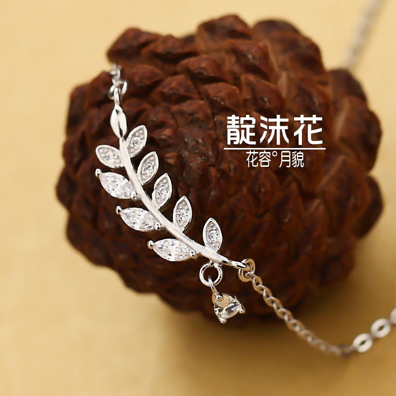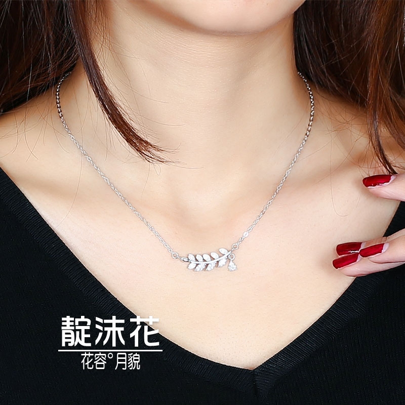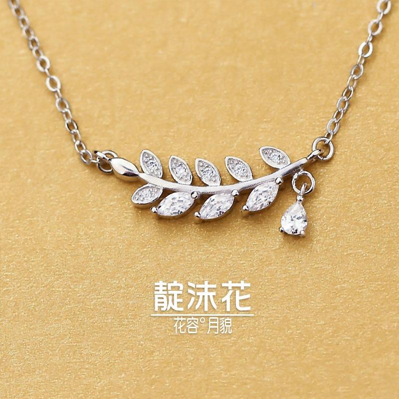 s925 pure silver leaf necklace zircon pendant lock bone chain Japan-Japan version fresh sweet and beautiful necklace art matching ornament female