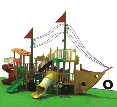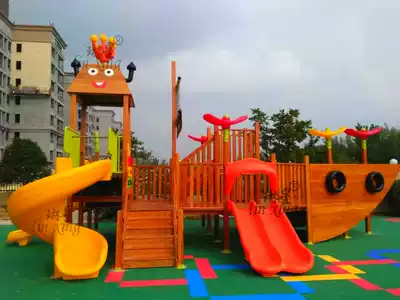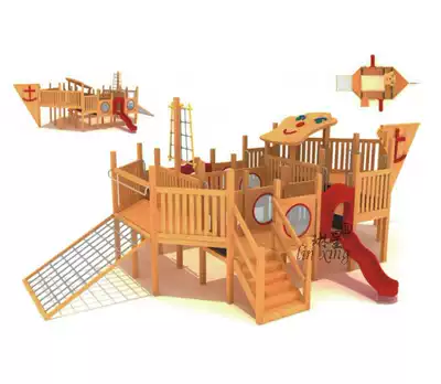 Customized wooden large pirate boat slide children outdoor slide kindergarten community combination wooden amusement facilities