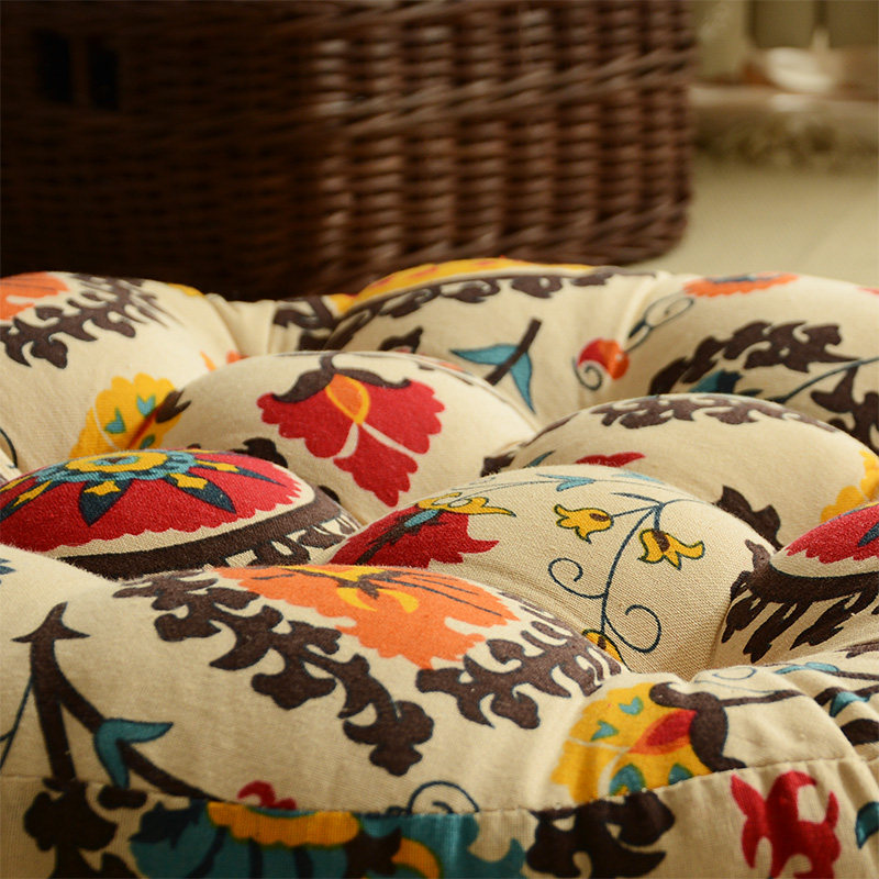Cotton thickened rattan chair cushion student chair cushion linen round meditation tatami bay window cushion futon