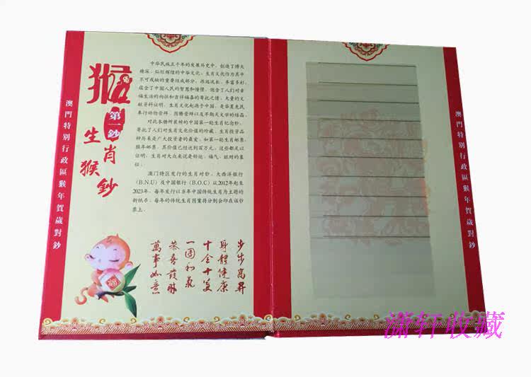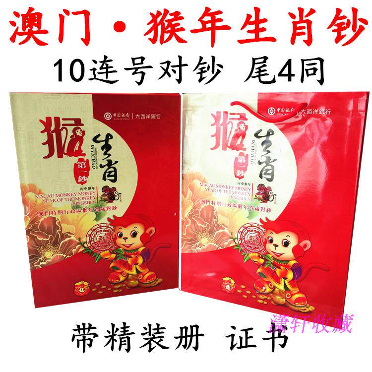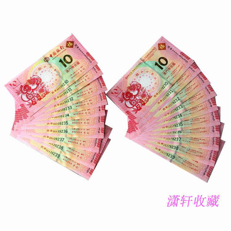 Macao's 2016 Year of the Monkey Zodiac Commemorative Banknotes Macao Monkey Banknotes 10 pieces each with consecutive numbers and 4 with the same number after the banknotes