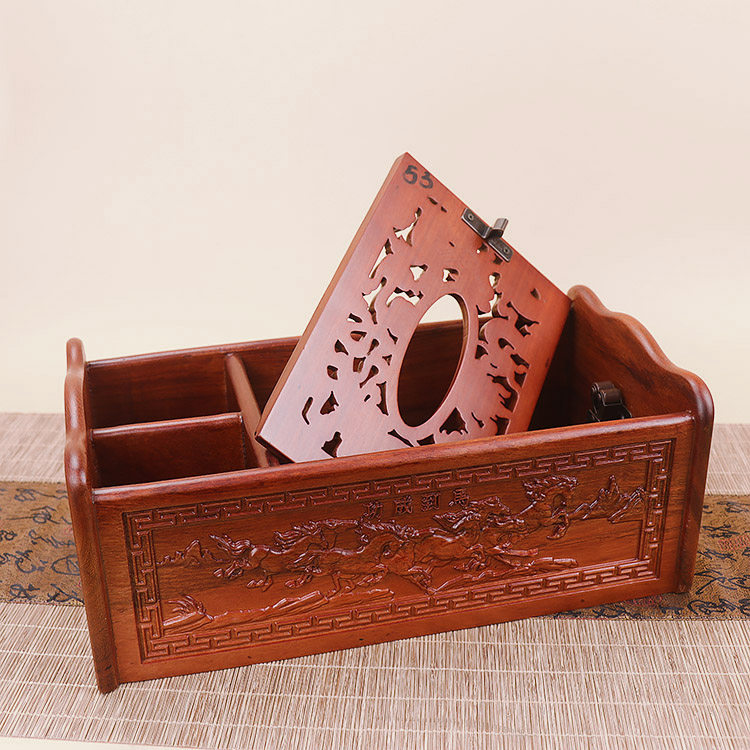 Solid wood multifunctional toilet paper box creative Chinese desktop remote control storage box lunch box mahogany rosewood paper box