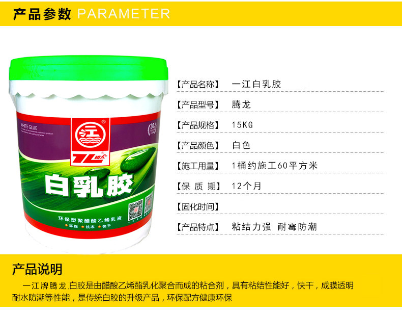 Yijiang brand white latex sticky wood glue carpentry glue white glue model glue white bottom material glue polyvinyl acetate emulsion