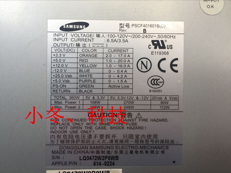Apple G4 mirror power supply API1PC36PSCF401601B (C) 614-0224