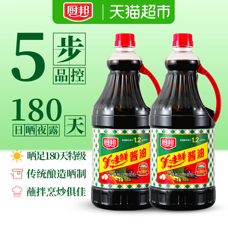 Kitchen Bangmei fresh soy sauce 1 68L * 2 combination super raw soy sauce brewing fried vegetables steamed fish cold seasoning seasoning