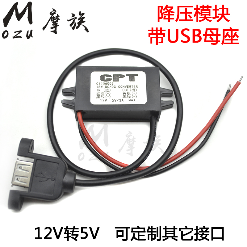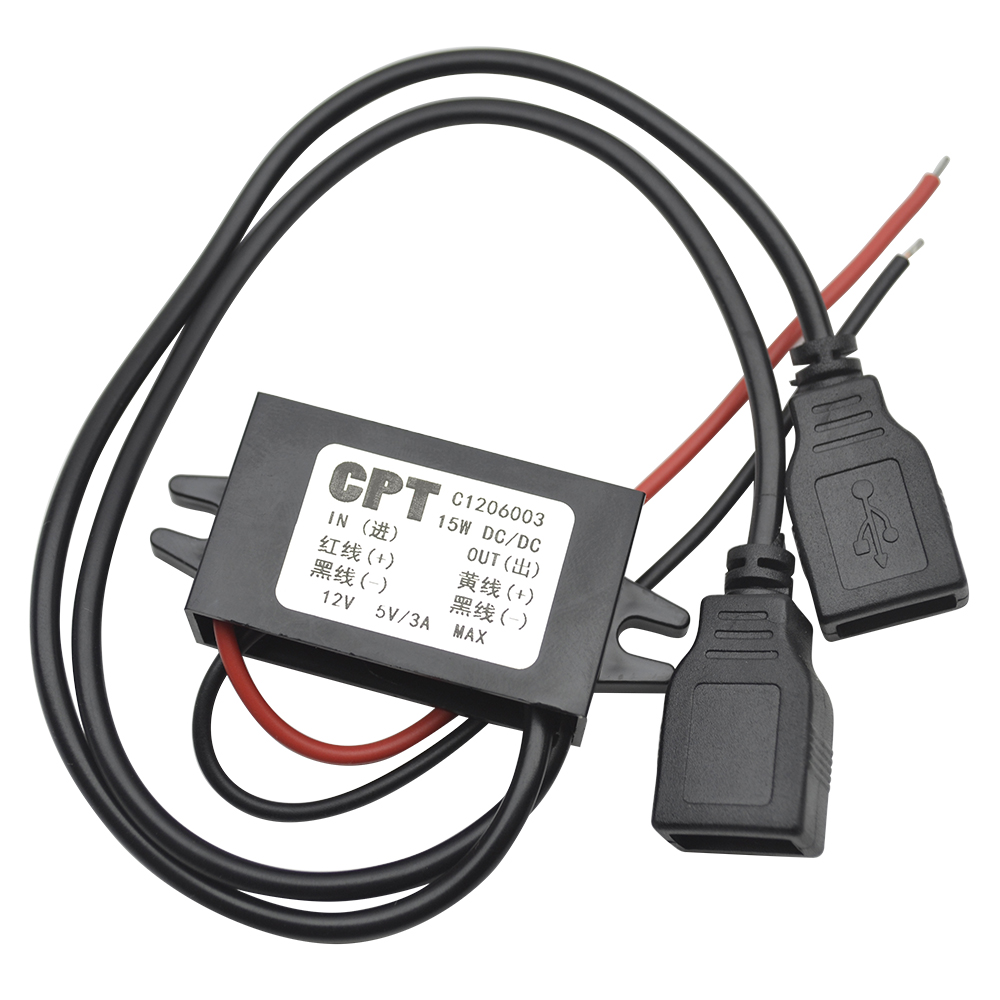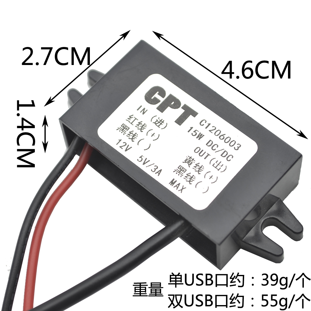 DC Transfer DC Voltage Reduction Module 12v Turns 5v3A Dual Usb On-board Power Converter Step-down Line Charging