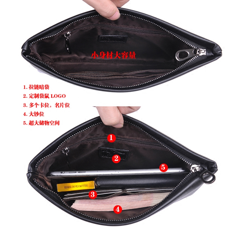 Sky kangkangaroo genuine leather envelope bungalow with men's handbags Bull Leather Soft Leather Wallet bag Large capacity Korean version Tide Hand Grip
