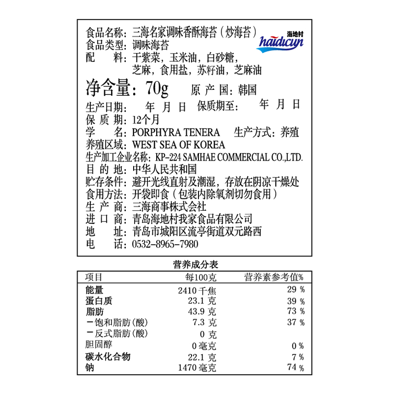 South Korea imported Sanhai famous seasoning fried seaweed sesame instant bibimbap 70g children's snack seaweed crushed bibimbap