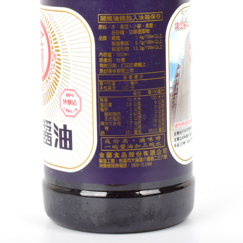 Taiwan imported Jinlan Soy Sauce Jinlan Pure brewing soy sauce 1000ml Preservative-free children's baby soy sauce