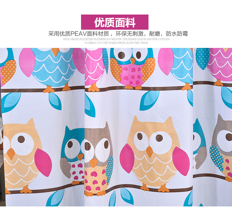 Bath Curtain Suit Cat Owl Waterproof Thickened mildew PEVA bath curtain Opaque Bathroom Curtain Partition Telescopic Rod