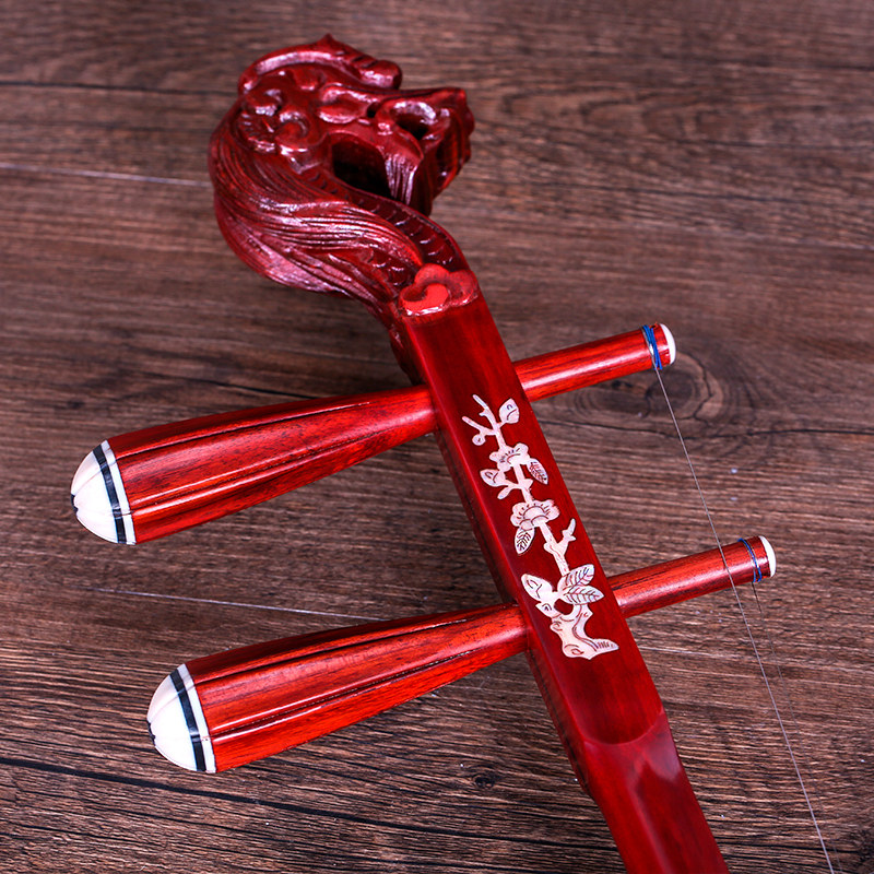 Red sandalwood Guangdong Gaohu faucet Red sandalwood embedded shell Gaohu Cantonese Opera with piano to send accessories