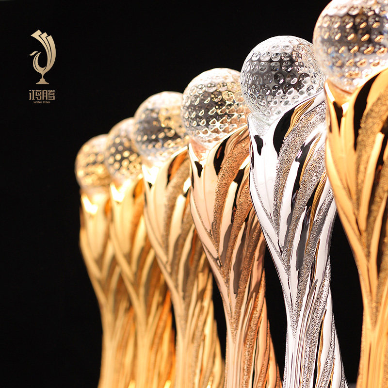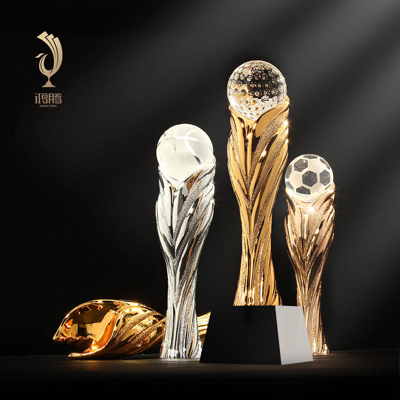 High-grade crystal trophy custom football basketball game golf metal trophy resin champion gold silver bronze lettering