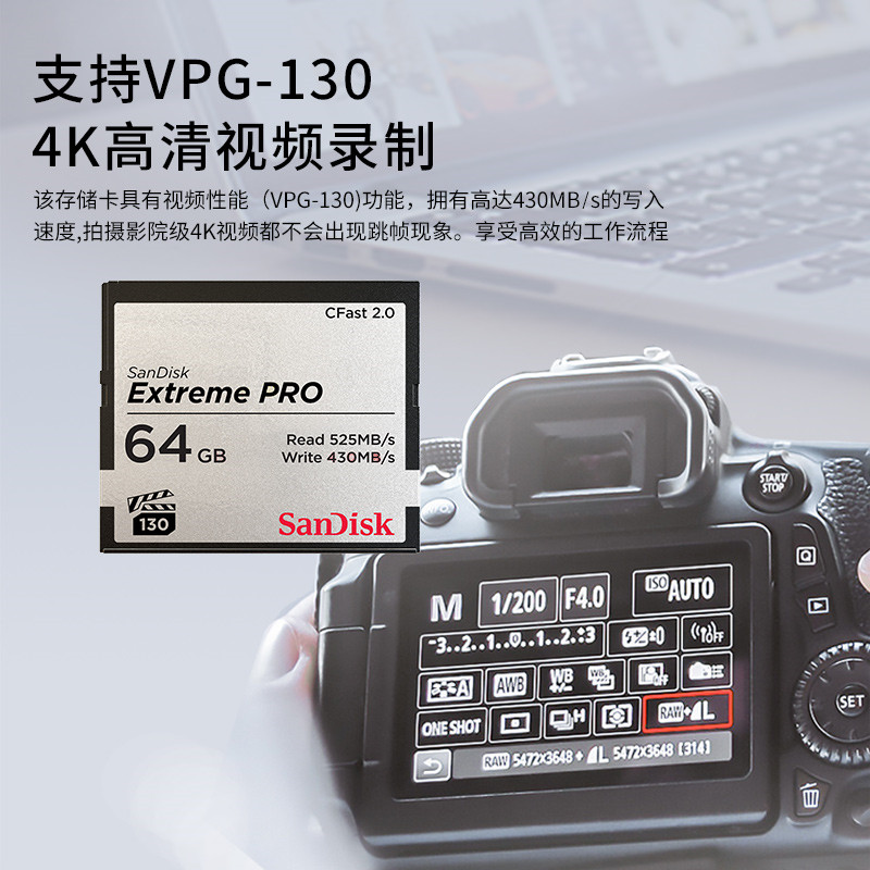 SanDisk CF 64G Memory Card CFAST2.0 High Speed Camera Memory Card Camera Card Canon 1DX2 bmpcc4K