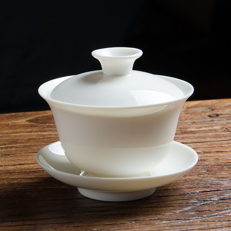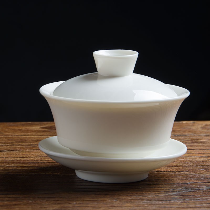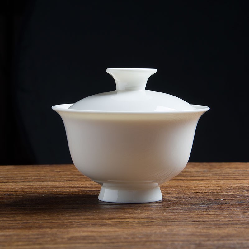 Tea Mifang ivory white cream trumpet large white porcelain cover bowl ceramic tea bowl kung fu tea set three talents cover cup