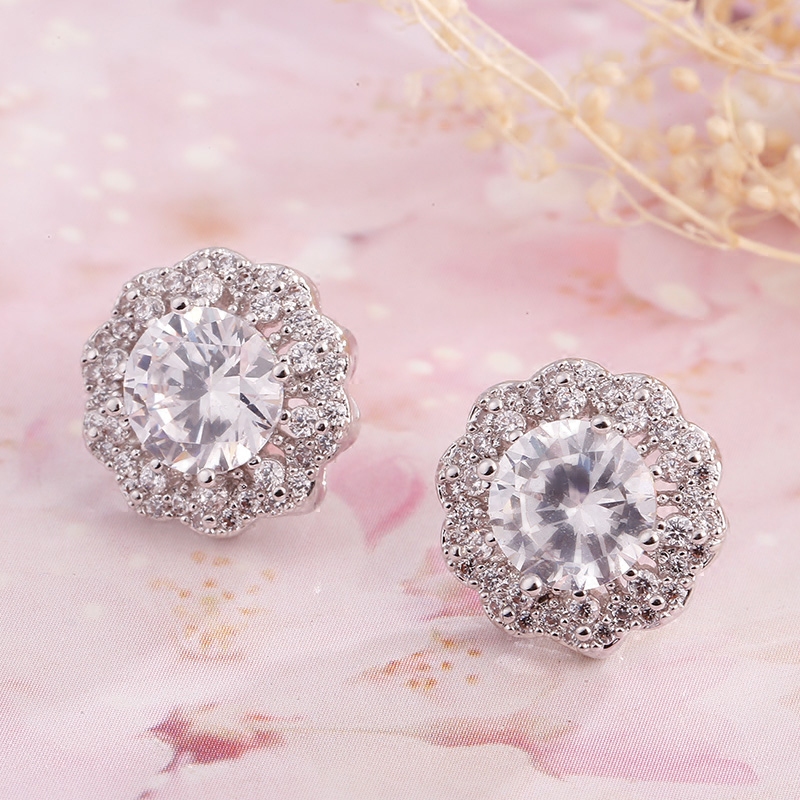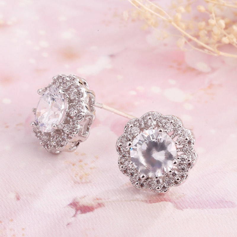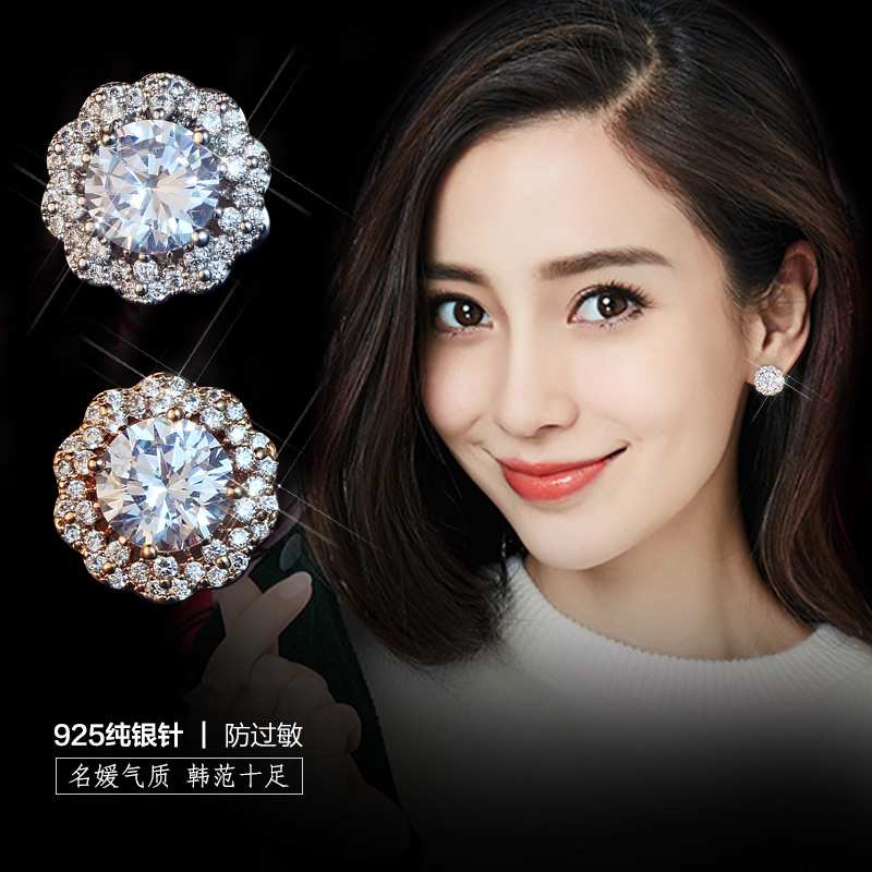 S925 sterling silver ear pin female temperament Korean version fashion diamond-encrusted zircon earrings Japan and South Korea personality super flash ear jewelry