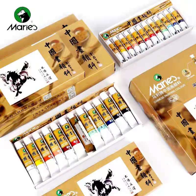 Marley Chinese painting pigment 12 18 24-color Chinese painting pigment set Ink painting Landscape painting Rice paper tool material