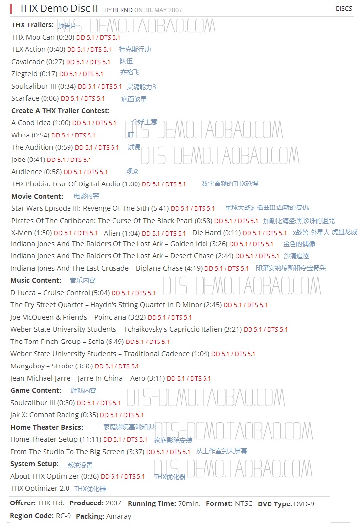 The THX 2 THX demo DISC II sends the debug color filter DVD