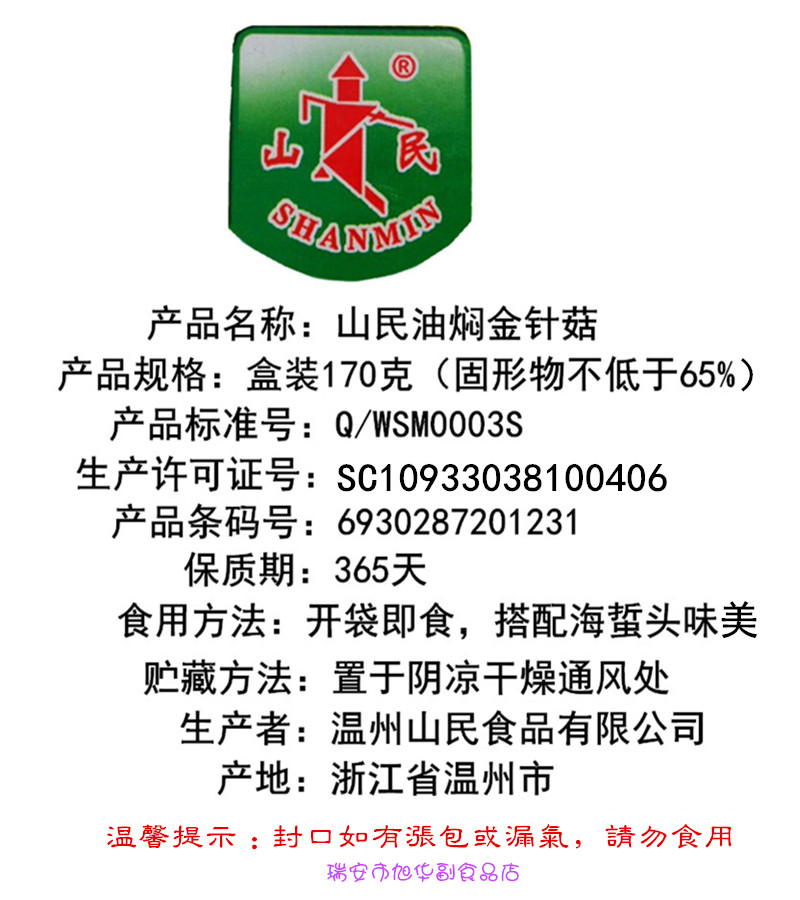 Shanmin braised Flammulina velutipes in oil 170g 10 boxes, ready to eat if cold jellyfish skin is delicious Wenzhou farmhouse