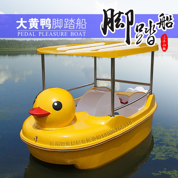 Rhubarb Duck Cruise Ship 4 People Fiberglass Self-Drain Pedaling Boat Park Cruise Ship Water Bike Cartoon Boat
