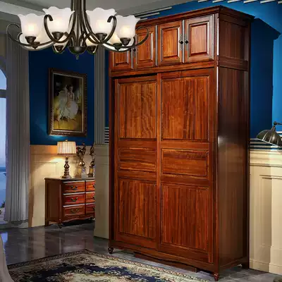 Chinese style 1 2 wardrobe solid wood children's sliding door bedroom kitchen with smoking 1 meter 6 American sliding door small apartment wardrobe