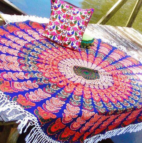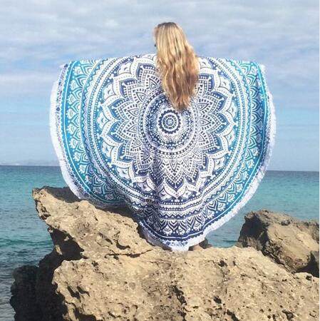 European and American round beach towels with stream Su printed beach swimming wrap towel sunscreen Shoulder Meal Cushion Table Cushion Sofa Towels