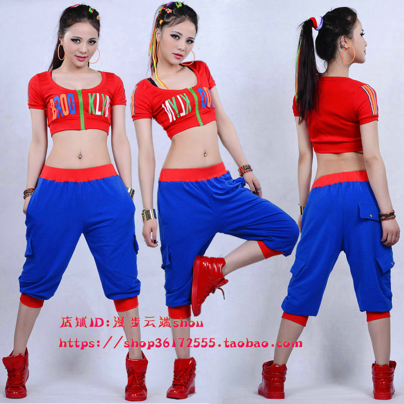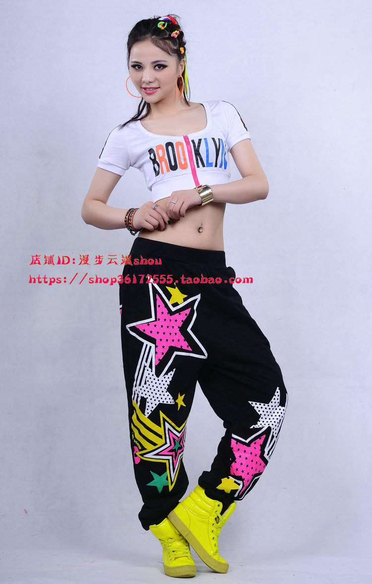 jazz letters reveal navel short blouses hip hop street dance loose casual pants jazz dance practice ds acting out suit