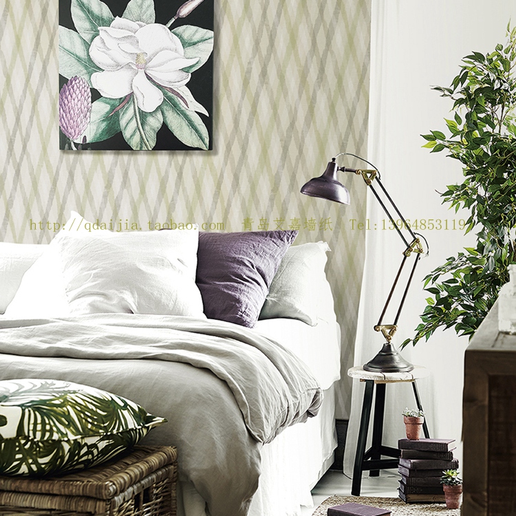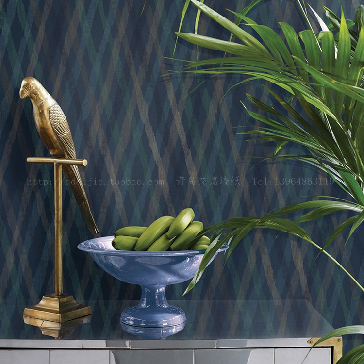 Aiga pure paper wallpaper Nordic minimalist American New Chinese deep blue geometric rhomboid Living room Book room wallpaper