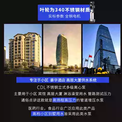 CDL-4 304 stainless steel vertical multi-stage centrifugal pump Large flow high-rise booster pump circulating pump Multi-stage water pump