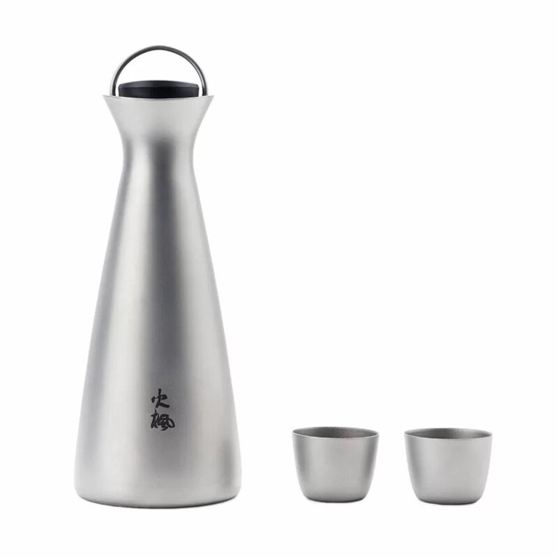 Fire maple titanium bottle outdoor ultra-light pure titanium bottle camping ultra-light portable creative wine set titanium metal bottle wine glass