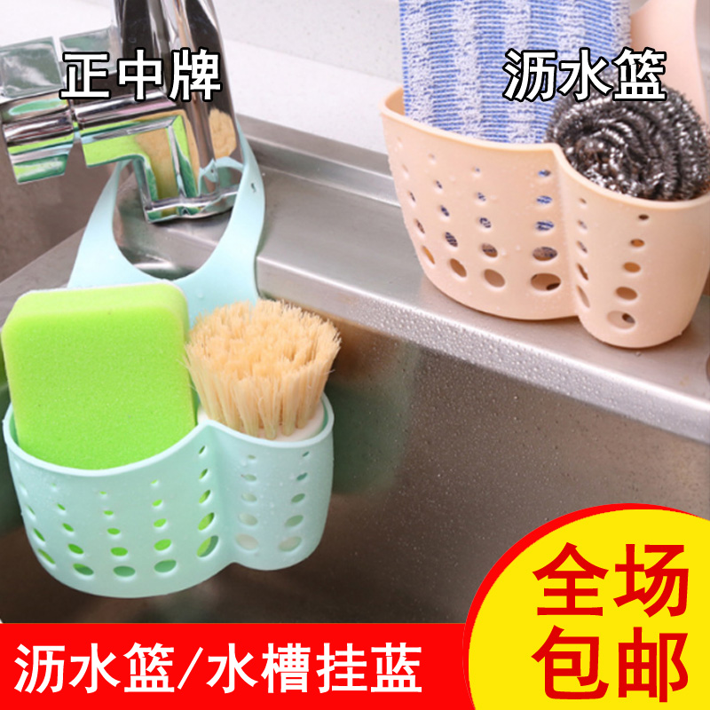 Kitchen sink hanging blue hanging faucet drain basket put dishcloth sponge steel wire ball rag storage in the middle