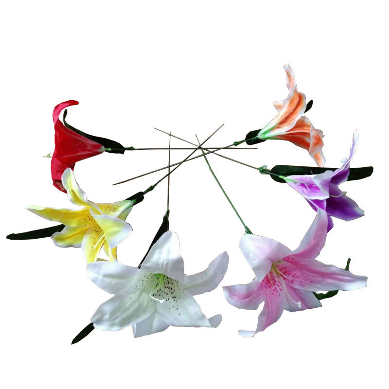 Simulation flower single lily flower Qingming flower arrangement flower tomb sweeping flower decorative flower single silk flower fake flower cheap plastic flower