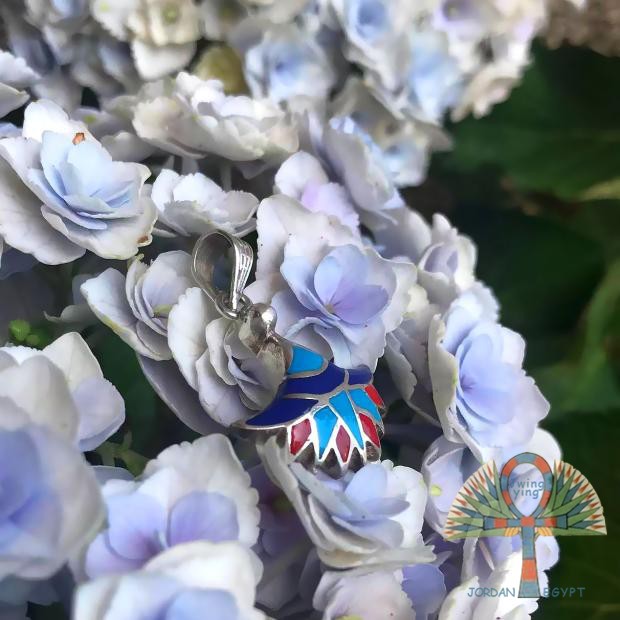 Y03 Egypt imports silver decorated pure hand to create silver decorated retro sleeping lotus flower red studded pendant