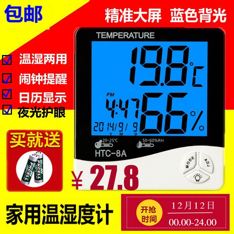 HTC-1 temperature and humidity meter TA-308 large screen display square pointer temperature and humidity meter HTC-8A with night light