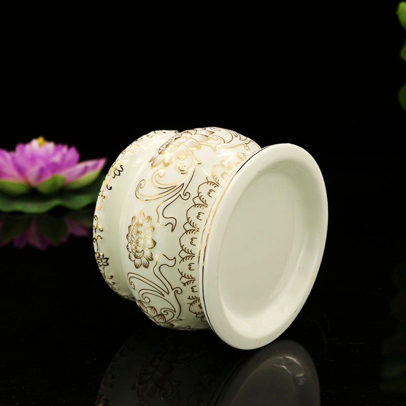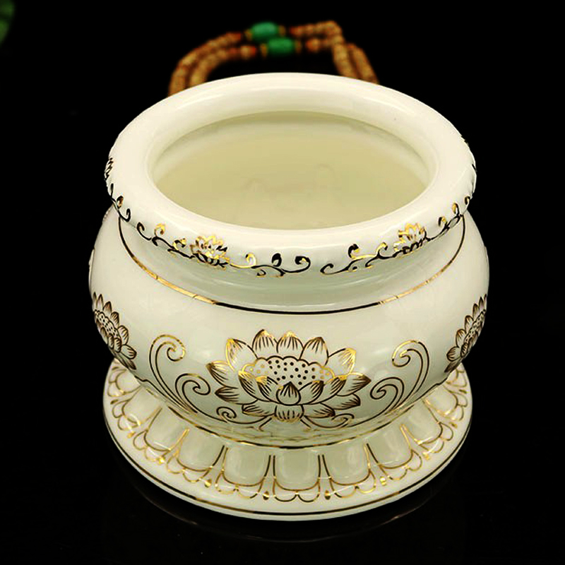 Buddhist supplies white relief lotus round mouth incense stove white jade sketching gold ceramic incense stove for a fuming stove lotus flower stove