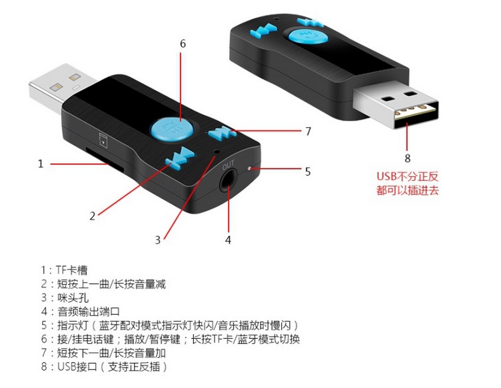 Car aux to Bluetooth receiver Car Bluetooth aux receiver Wireless car mp3 audio hands-free phone