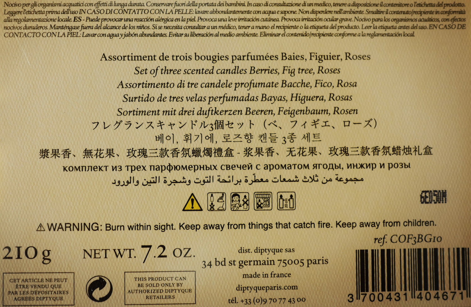 Spot French Diptyque fragrance candle gift box three roses fig berries 70g*3