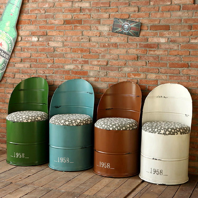 American Retro Iron Art Old Round Stool Barrel Stool Bar Stool Bar Stool Leisure Bar Color Chair Sofa Coffee Chair